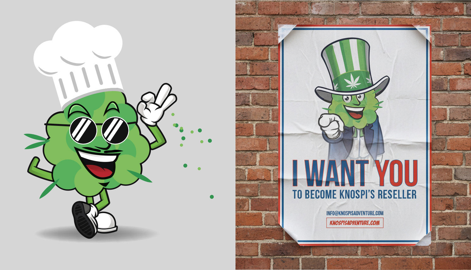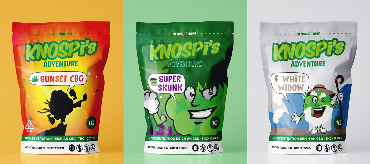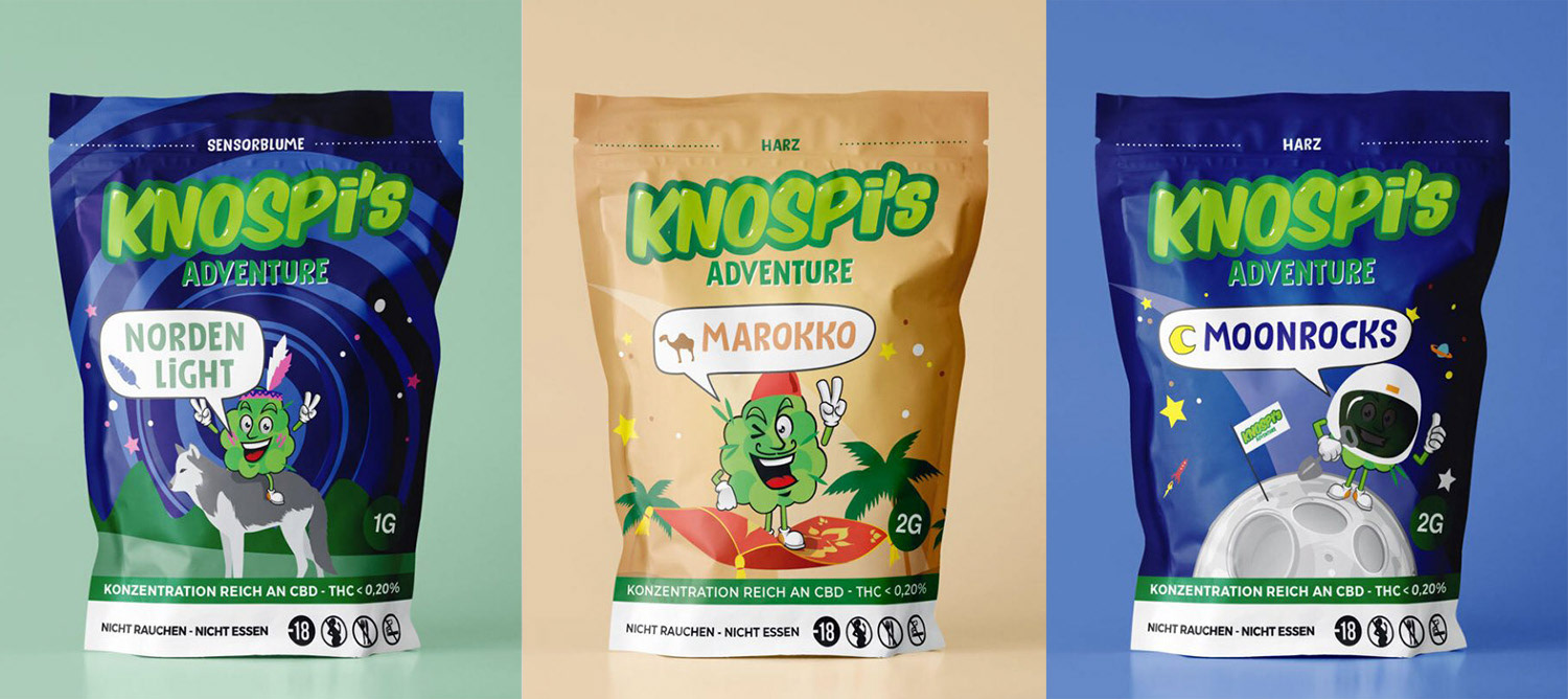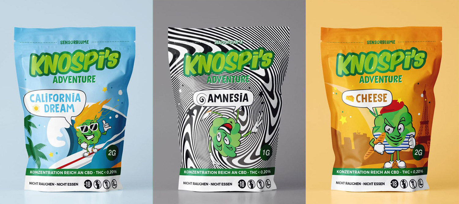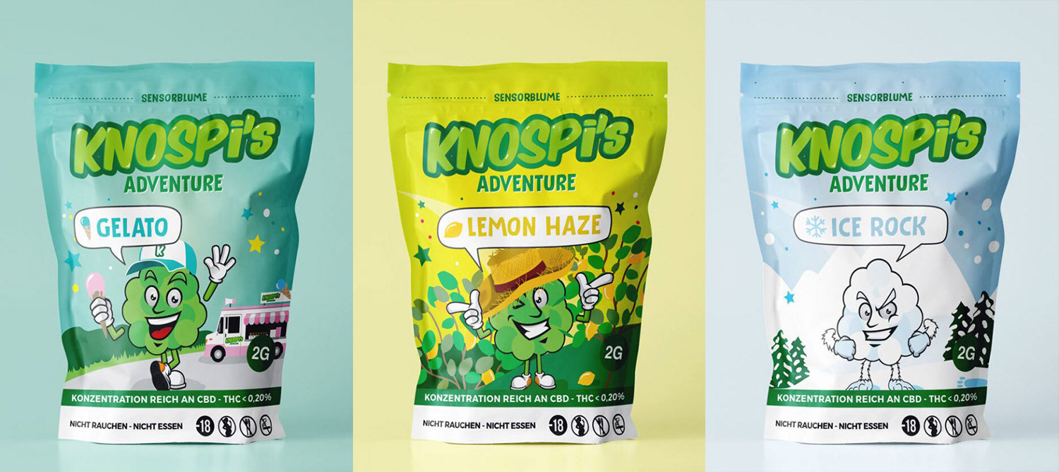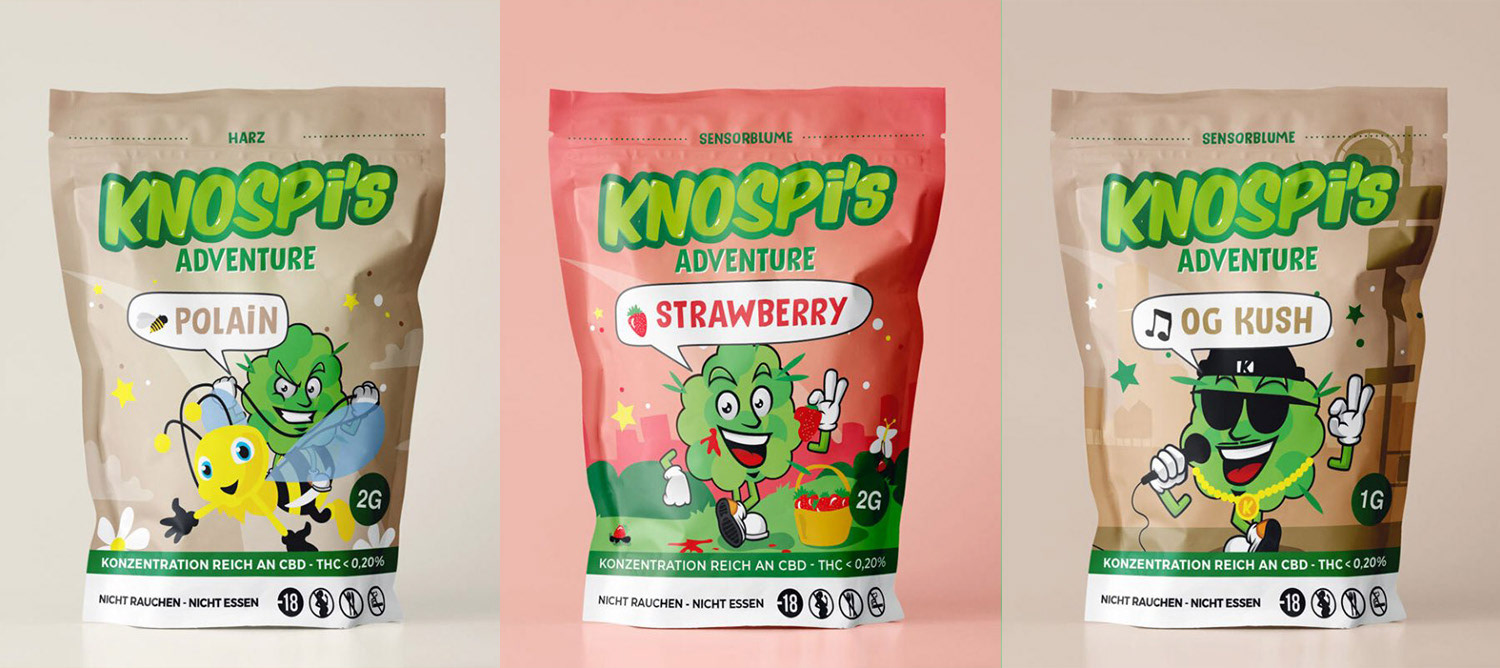 Pour Knospi’s Adventure, j’ai plongé dans un univers déjanté où le CBD devient le héros d’un monde haut en couleurs. L’objectif : créer un territoire graphique joyeux, expressif et un peu barré, à l’image de la marque.